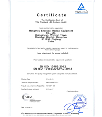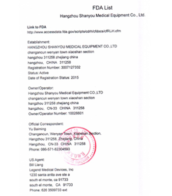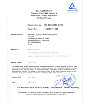 公司經(jīng)過全體員工的努力,已通過了ISO 9001和 ISO 13485體系認(rèn)證, 產(chǎn)品已通過了CE和FDA認(rèn)證,產(chǎn)品已銷售到美國,歐洲,亞洲美洲和非洲等國,博得廣大客戶價(jià)廉物美的美譽(yù)。