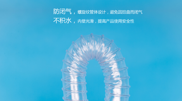3、獨(dú)特螺旋紋管體設(shè)計(jì),防止因扭曲而產(chǎn)生閉氣;